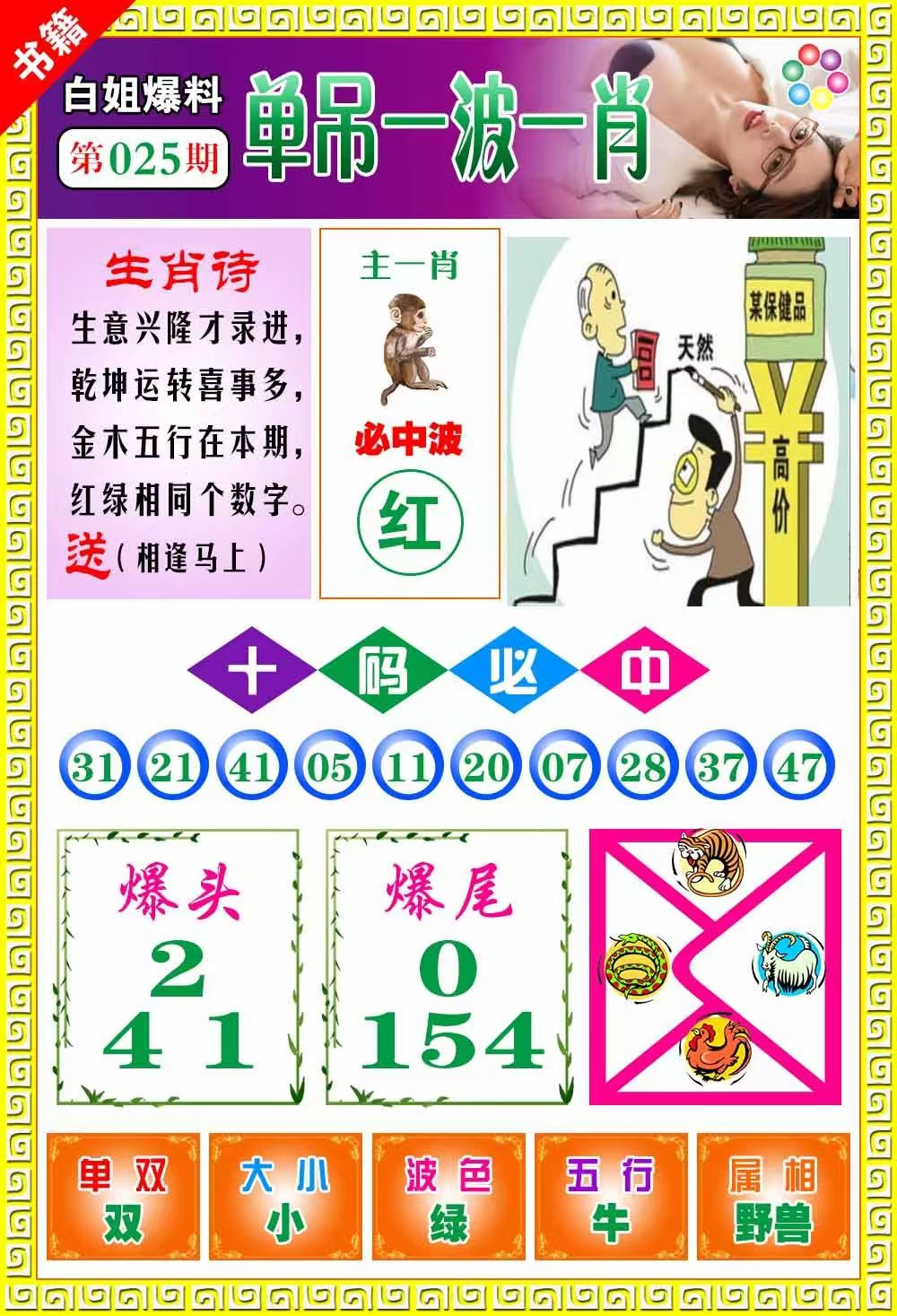 | 025期:精选二肖:兔猴 |